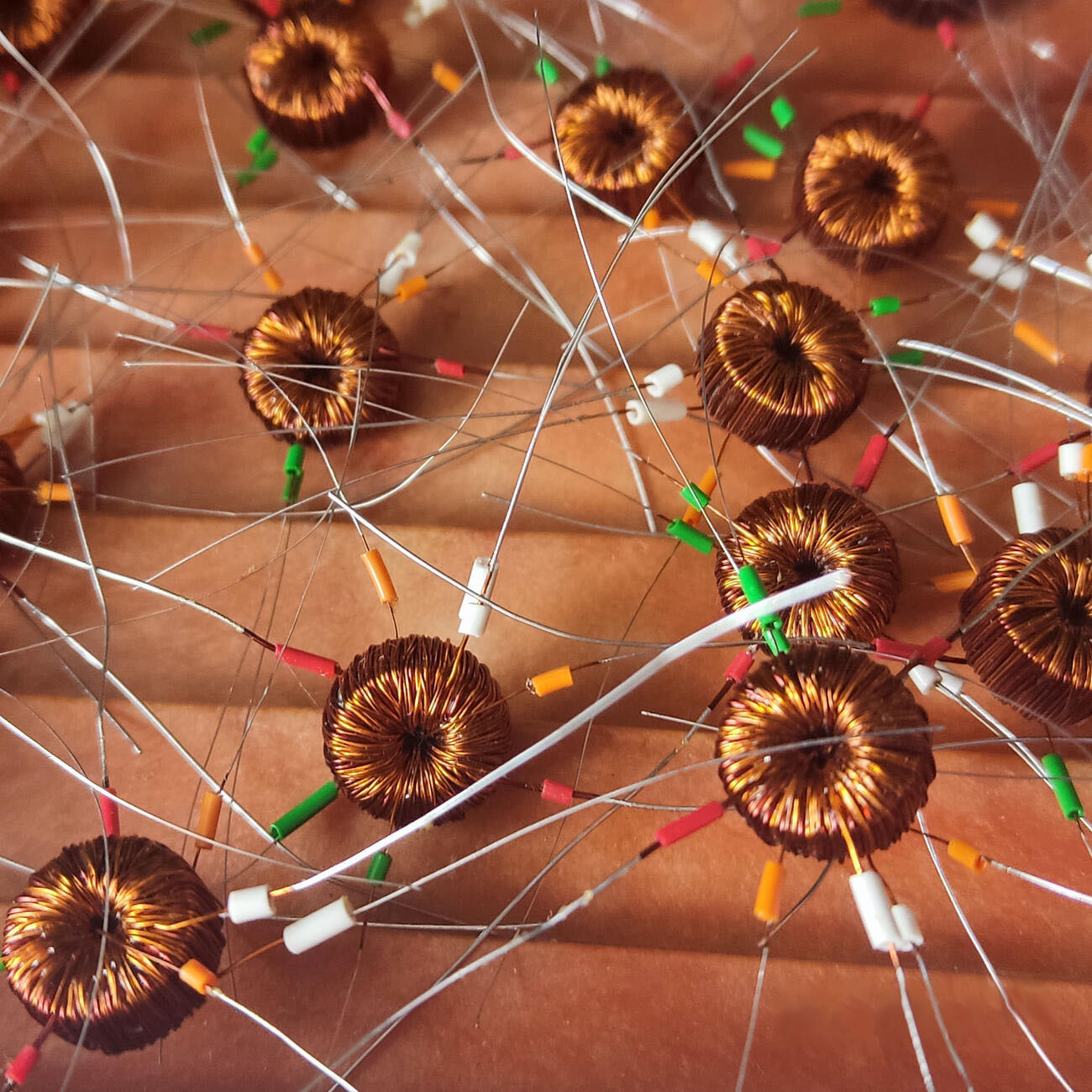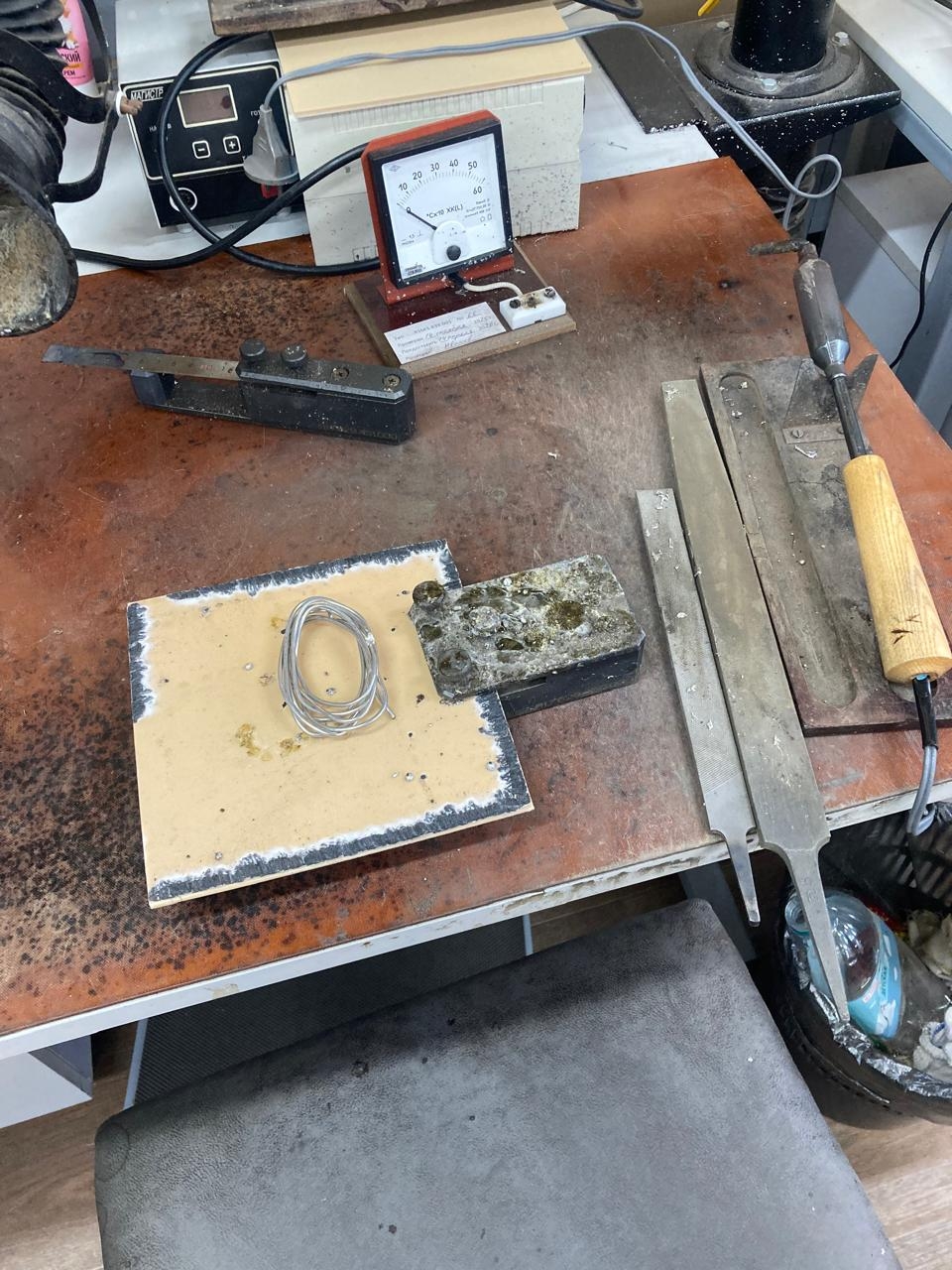 3. Укладывается на него лакированный проводок, прижимается паяльником с каплей ...