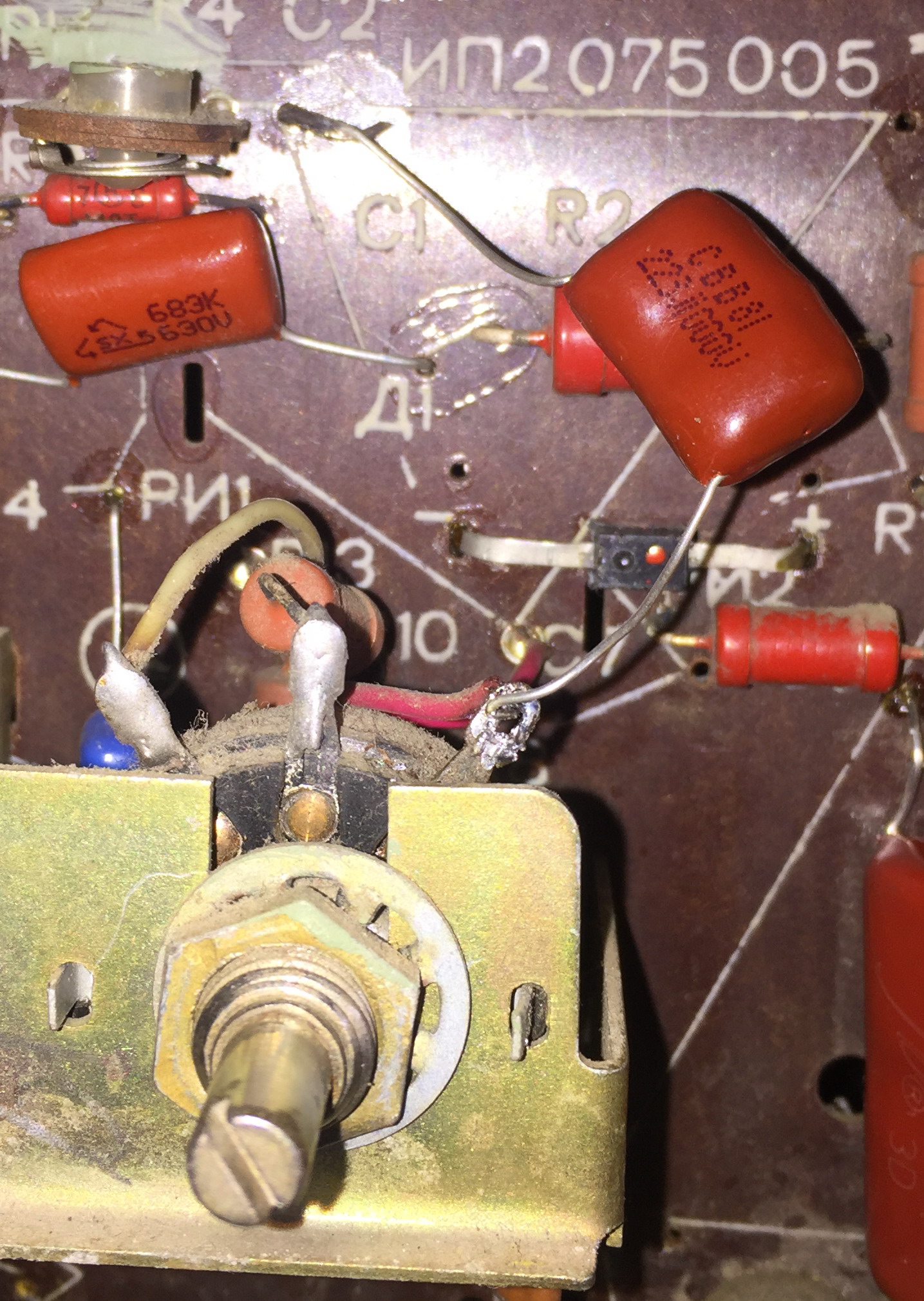 Это говорит о том, что кинескоп заперт и растра не будет. Вывод 7, это катод и напряжение на него прибегает со стороны видеоусилителя.Выводы 2 и 6, это модулятор и напряжение на него поступает, если просто, с платы, где стоит лампа 6х2п, подстроечник "Яркость грубо". И самое главное, что это та самая плата, которая на фото и где меняли конденсаторы. Вот и поищите хотя бы то, куда пропало напряжение на модуляторе.Артём Памшев писал(а): Вт апр 14, 2026 7:37 pm на катоде 7 выводе кинескопа напряжения 127 вольт, на модуляторе 2 и 6 выводе 0 вольт,