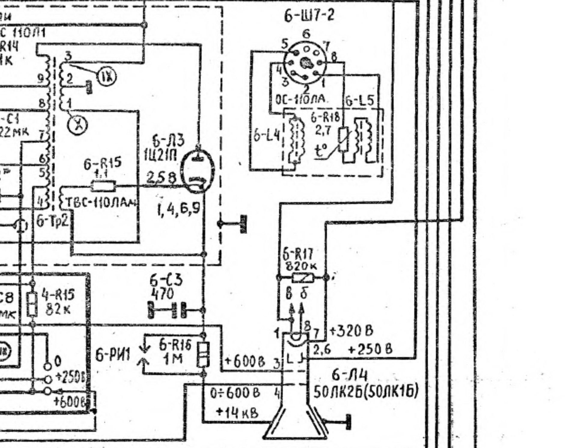 2 проверить напряжение на кинескопе, на схеме напряжения указаны:
