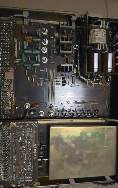 Усилитель в рабочем состоянии, после профилактики. По функционированию проблем нет, внешне на 4+. Межблочный провод в комплекте.