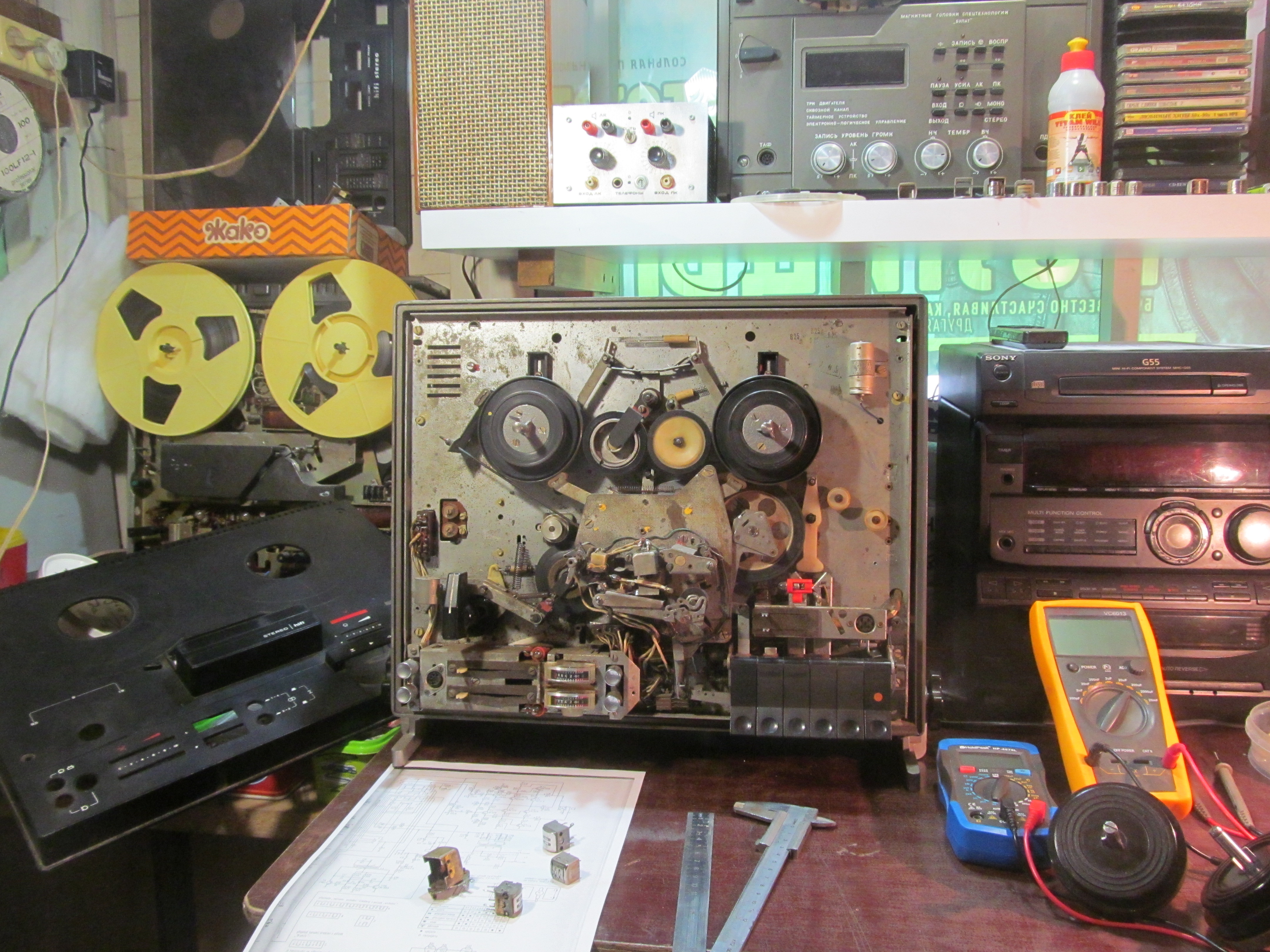 Привет.Revox A77,Akai GX 747,Akai GX 747dbx,Teac X 1000R,Электроника 004 с немецкими моторами и кварц.стабилизацией,Олимп 005С1.Technics 1500 подарил-очень сильно вонял.