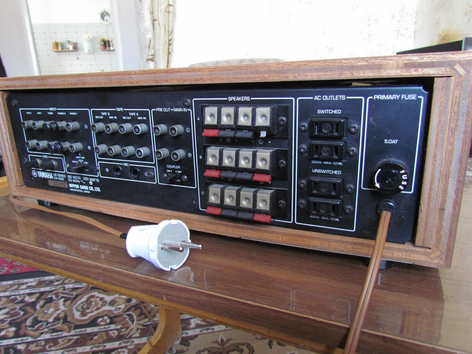Ещё - CA-1000 имеет возможность перевода питания на 220\240 Вольт, имеются выводы на первичке, а задние розетки в свою очередь оставить на 100 Вольт, это тоже не сложно. У CA-1000II такой возможности я уже не заметил.