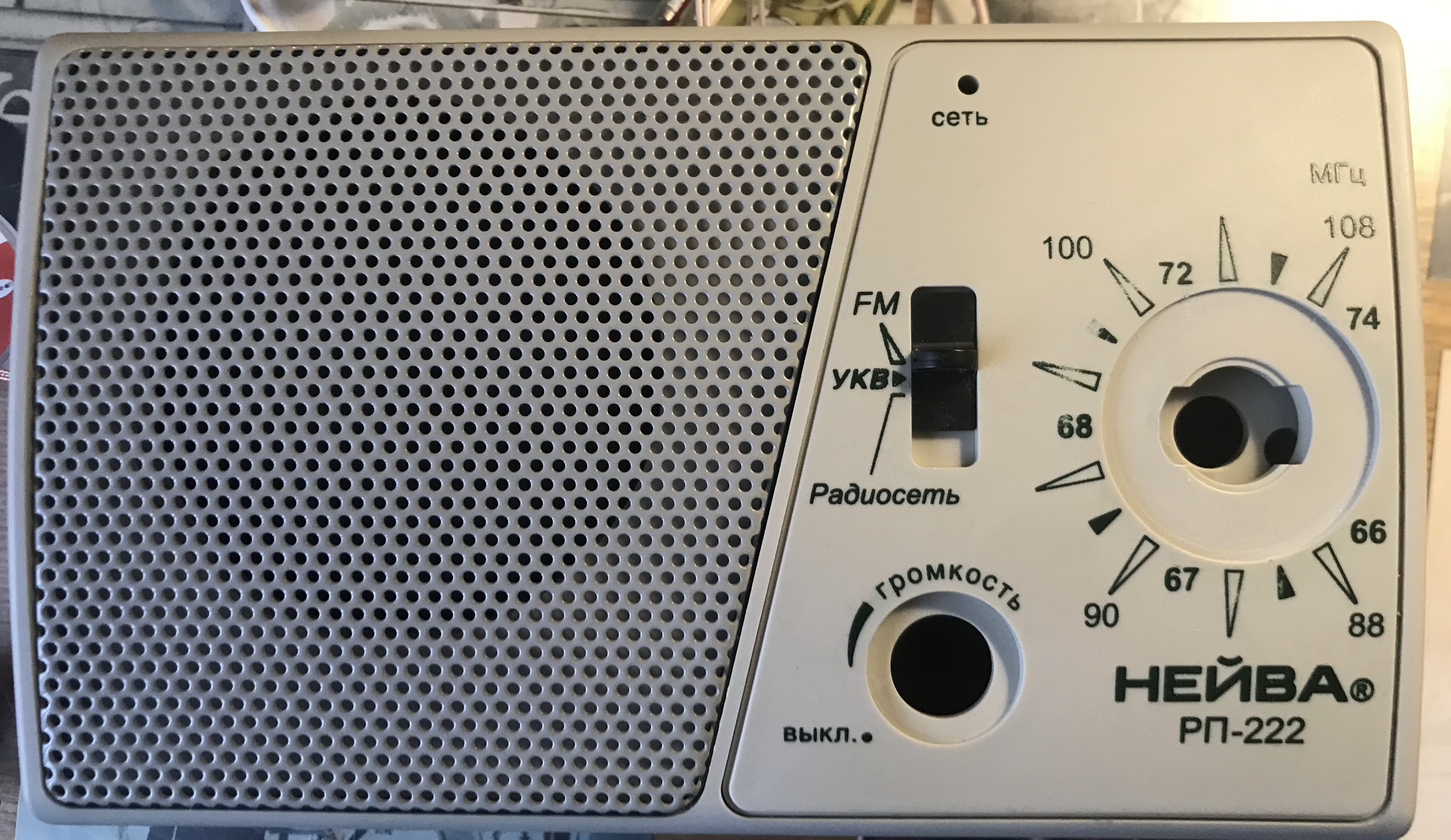 Приемник радиовещательный «Нейва РП-222» предназначен для приёма программ радиовещательных станций в диапазоне УКВ, FM и низкочастотного канала сети проводного вещания (радиосеть):