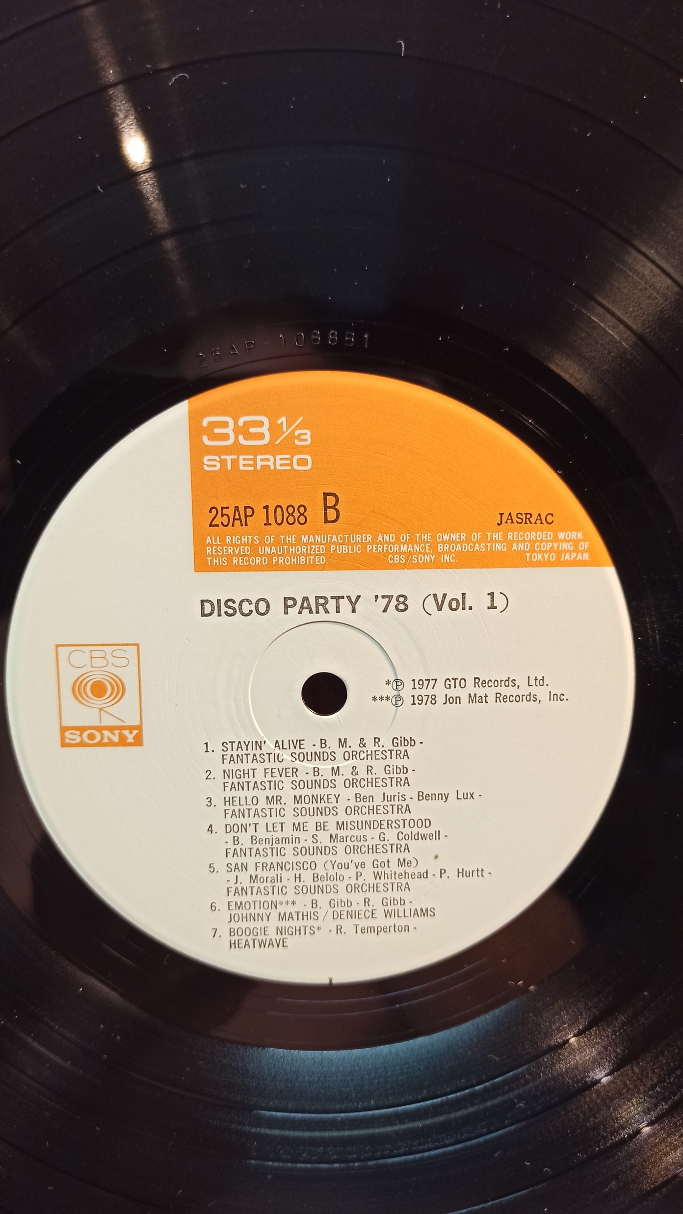 DISCO PARTY`78 Vol.1 CBS Sony Japan 25AP 1088 A1B1 Ex/Ex +!!! 1000