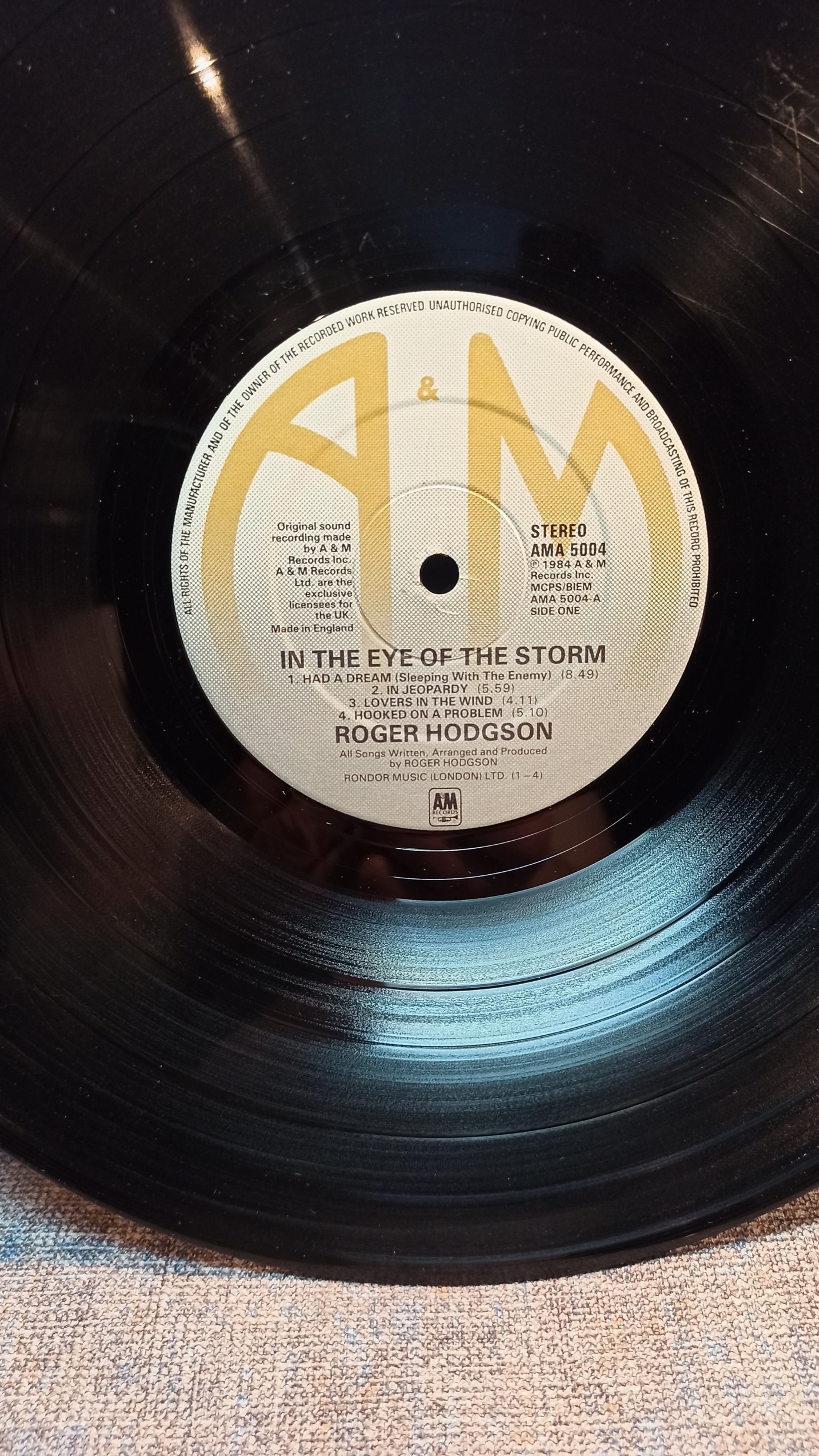 ROGER HODGSON In the eye of the storm AM Rec.UK England AMA5004-A2B2 Vg/Vg+ 1000
