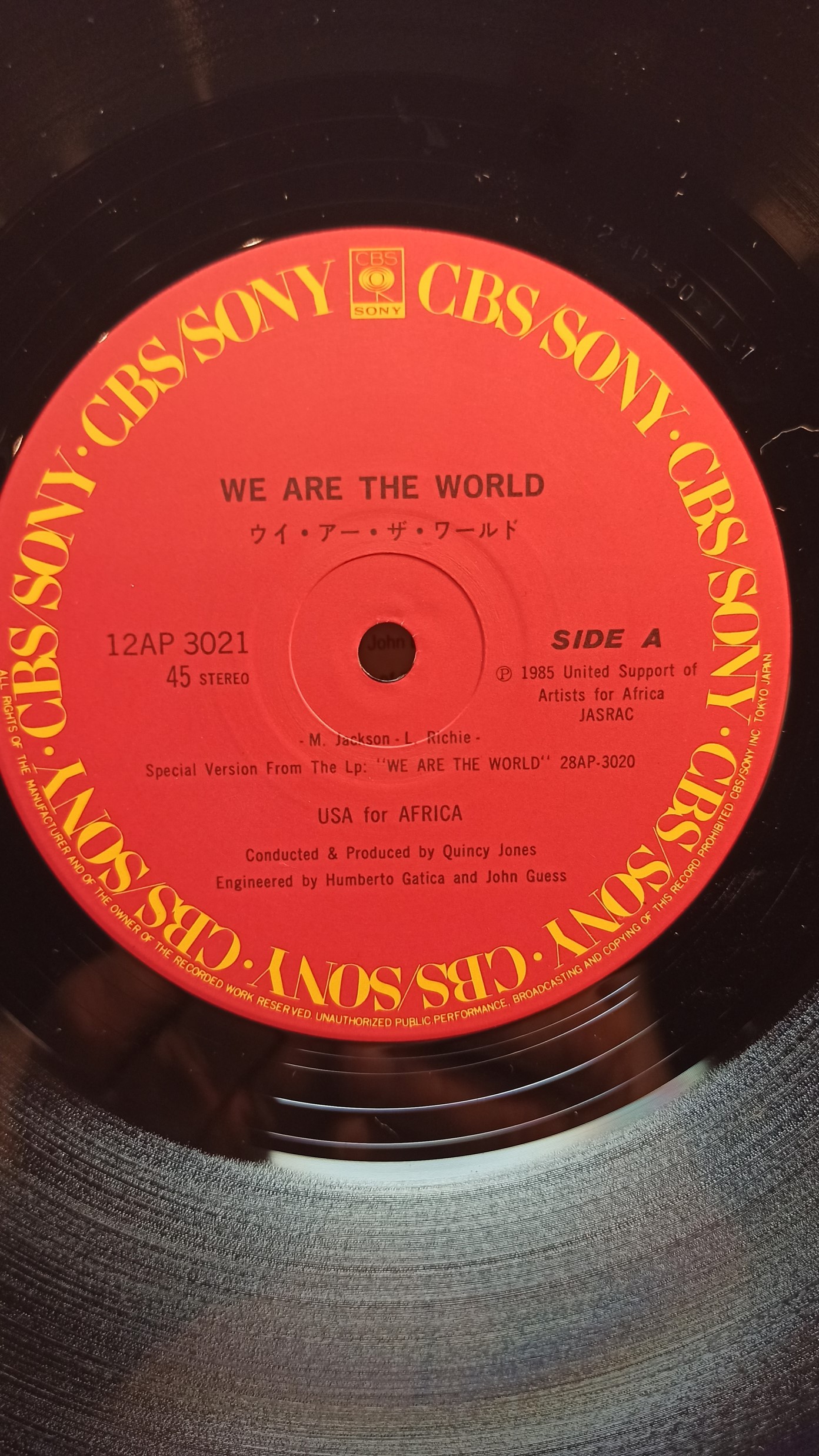 WE ARE THE WORLD 12 Single 45 CBS Sony 12AP3021 JAPAN Ex/Ex 1000