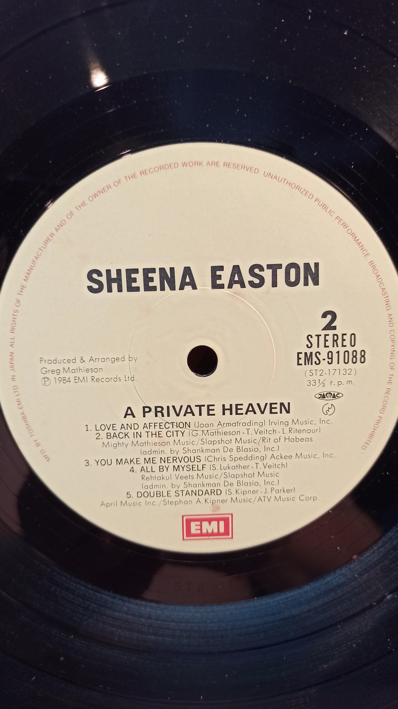 SHEENA EASTON A Private Heaven EMI rec. EMS-91088 ST2-17132 JAPAN Ex/Ex 1000