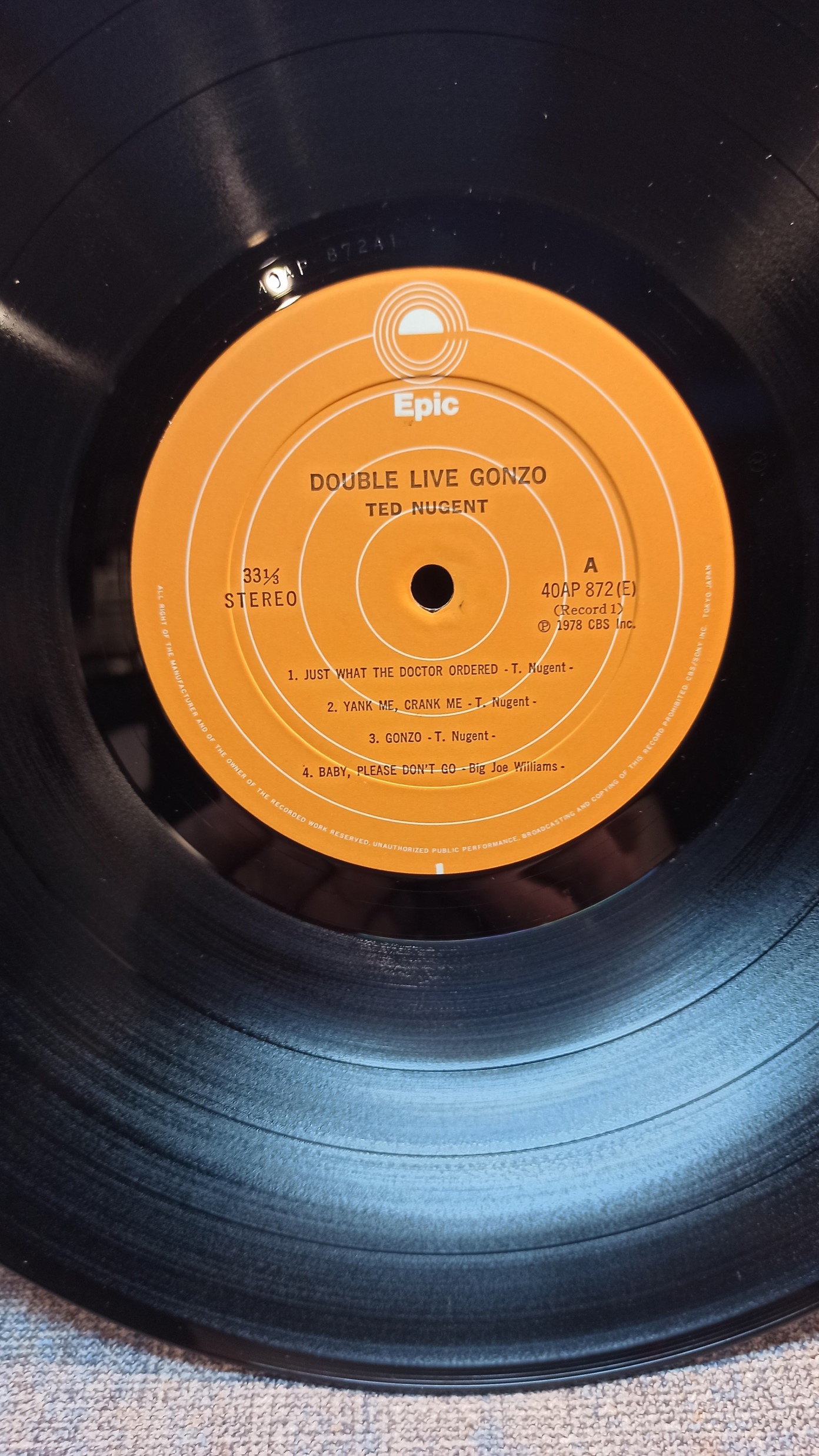 TED NUGENT Double Live Gonzo 2 LP 40AP-873A1B1 Epic Japan разворот Ex+/Ex+ 1400