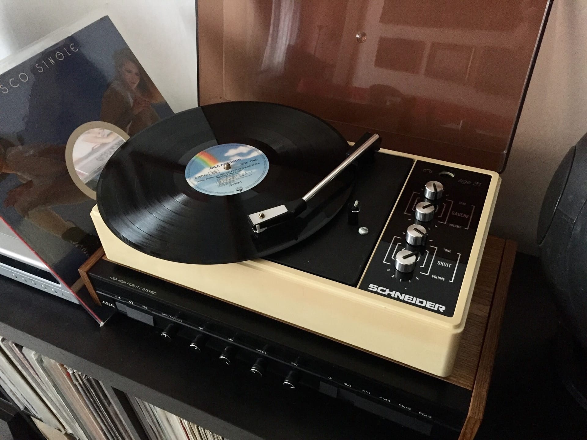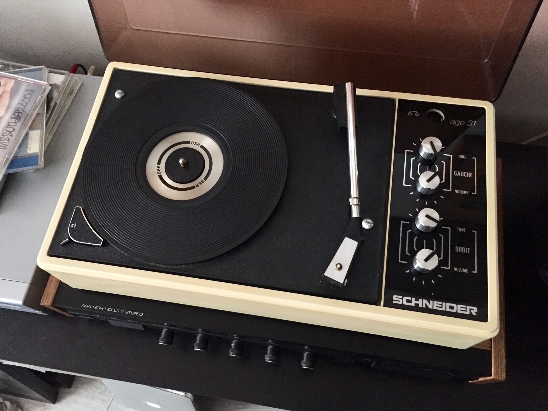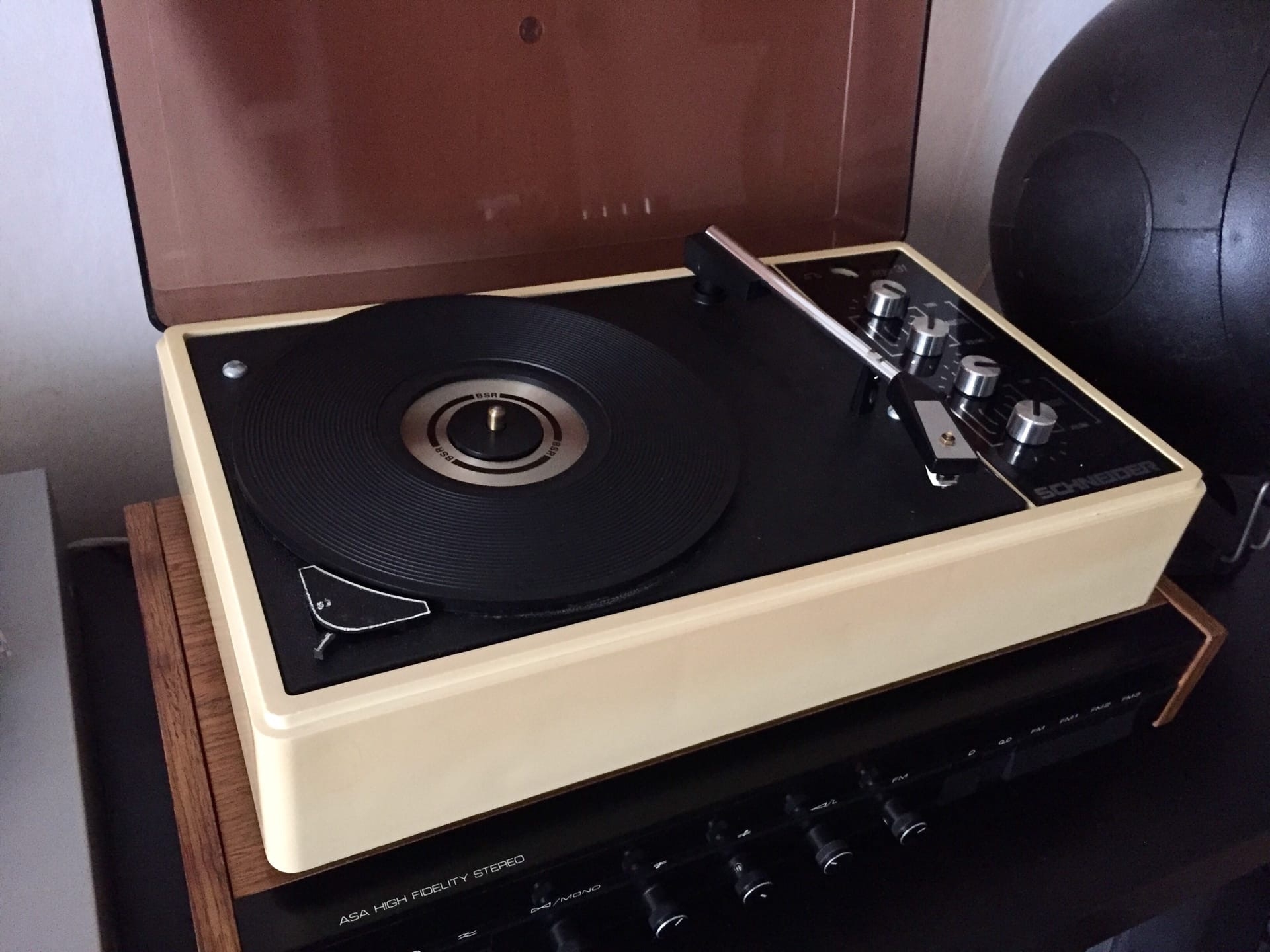 Такая вот еще "Space Age" шарманка - Schneider model Age 31 (Франция) 1969. Стол BSR (Англия) ролик, 33/45/78