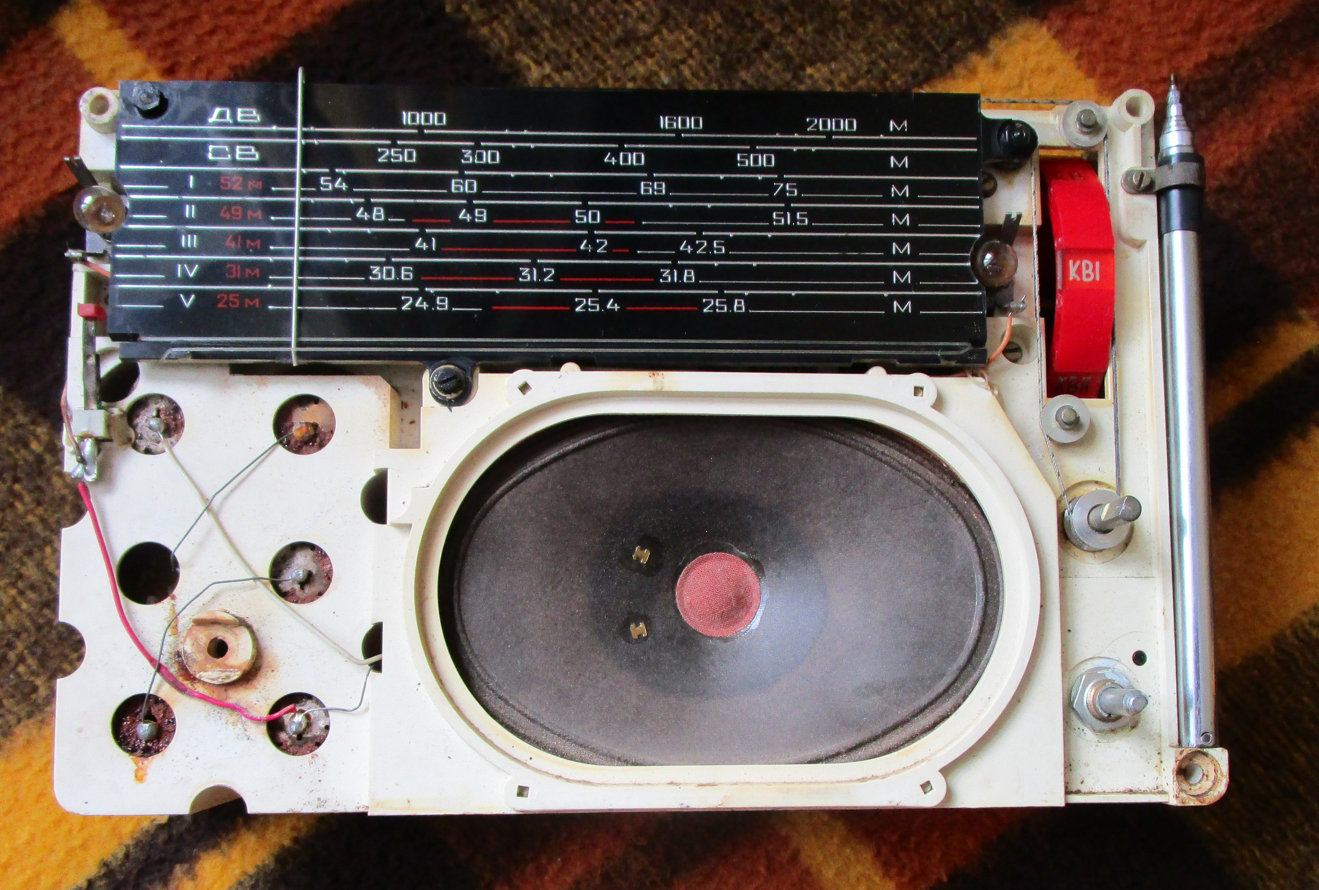 Шасси рабочее на всех диапазонах, на КВ1 поймал китайцев, есть ручка переноски, по деталям вроде всё родное 1969 года.