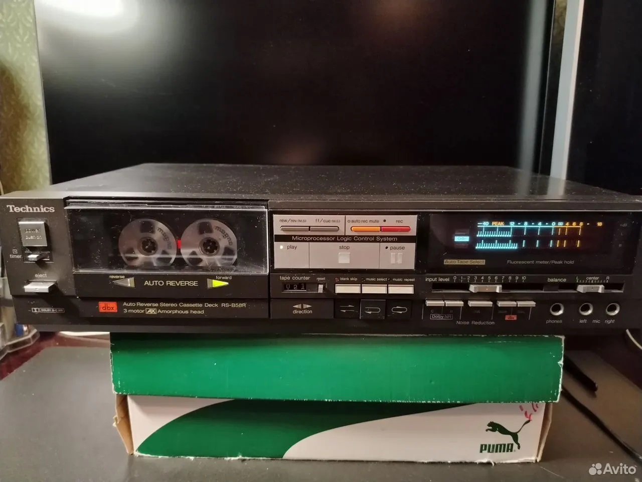 Technics RS-B58R 1984г красивейший аппарат из "золотой эры" звукозаписи, с автореверсом и поиском песен, долби B, C, DBX, 3 двигателя, аморфная головка, 3х цветный дисплей, полностью логическое управление!